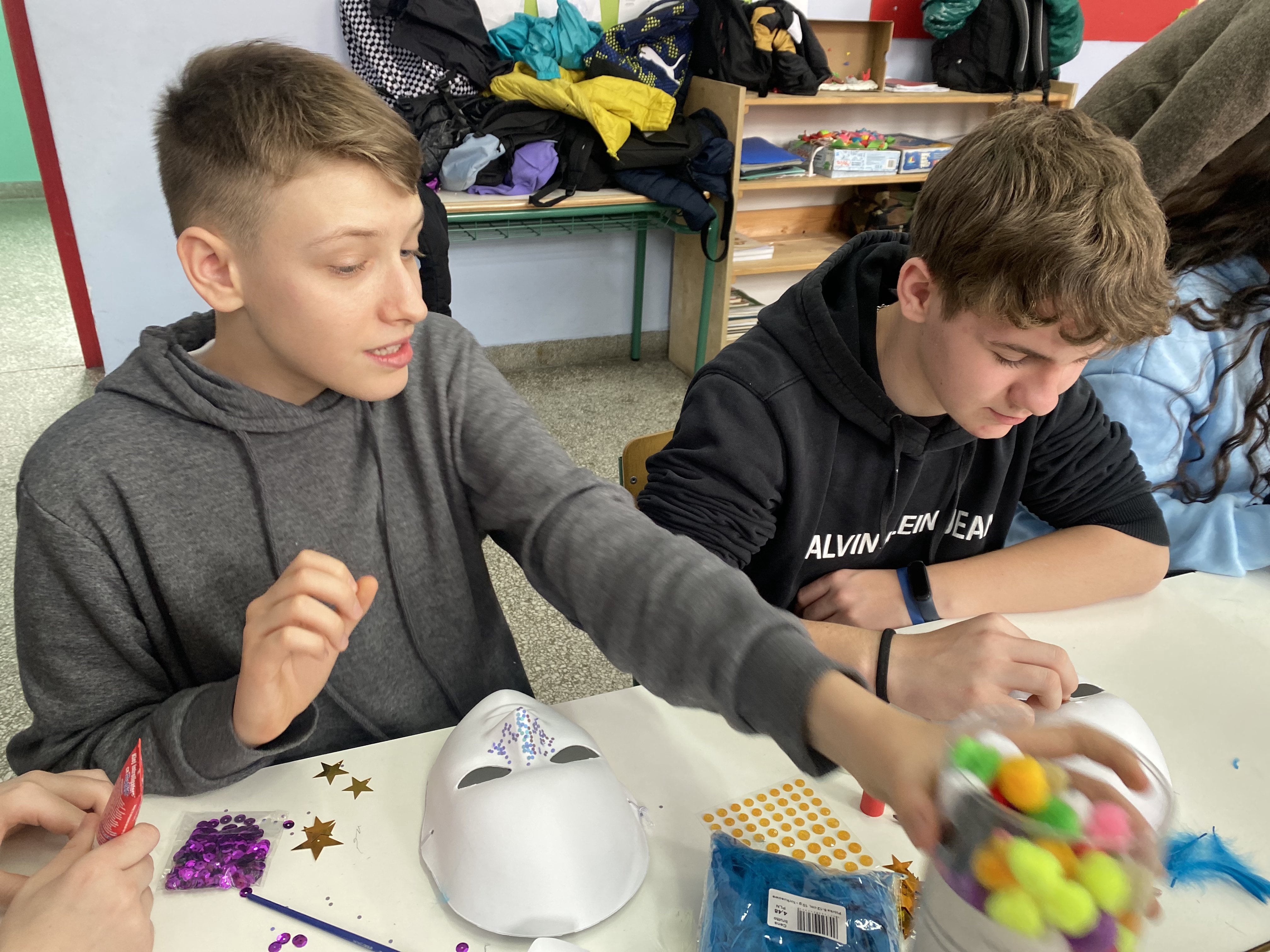 W ramach programu uczniowie mieli okazję uczestniczyć w warsztatach malowania masek karnawałowych razem z rówieśnikami ze szkoły przyjmującej za granicą. Warsztaty te pozwoliły uczniom na rozwijanie umiejętności artystycznych oraz nawiązywanie międzynarodowych przyjaźni. Efektem wspólnej pracy są kolorowe, unikatowe maski, które były prezentowane podczas szkolnego karnawału. Dzięki temu projektowi uczniowie zdobyli nie tylko nowe umiejętności, ale również wzbogacili swoją wiedzę o innych kulturach i tradycjach.